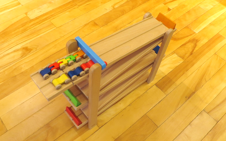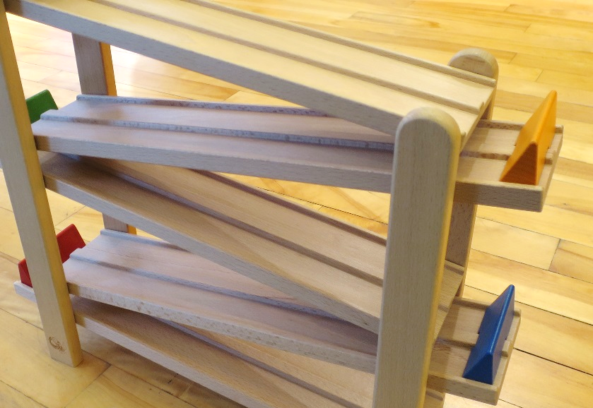 2レーンあるので、競争させることもできます。 注視・追視する目の能力を刺激するおもちゃです。