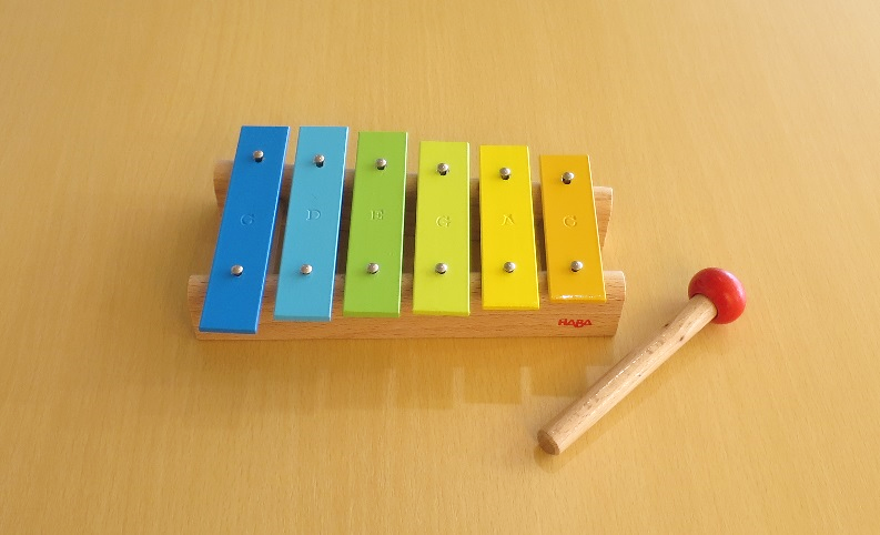 サ イ ズ :ミニ笛(9cm)、太鼓(10cm)、ミニ鉄琴(8cm)、撥2本(12cm)、カスタネット(8cm)、雨だれラトル(12cm)、アコースティック・ブロック4個